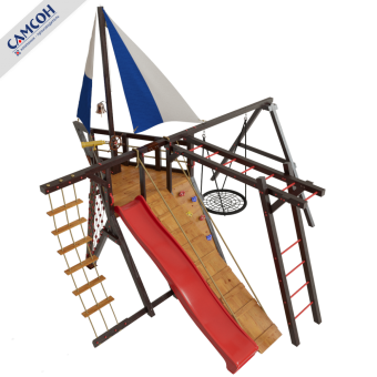 Товар поставляется в разобранном виде. В комплект для самостоятельной сборки входит подробная инструкция по сборке товара. Товар упакован в гофрокартонные короба в количестве: 10 мест + горка. Установка детской игровой площадки проводится на ровной поверхности, свободной от насаждений. Размер площадки не менее 8м х 9м. Рекомендуем зафиксировать конструкцию используя анкера любой формы.