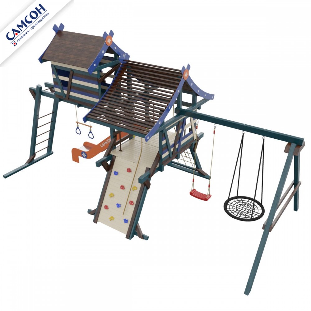 Товар поставляется в разобранном виде. В комплект для самостоятельной сборки входит подробная инструкция по сборке товара. Товар упакован в гофрокартонные короба. Установка детской игровой площадки проводится на ровной поверхности, свободной от насаждений. Рекомендуем зафиксировать конструкцию используя анкера любой формы.