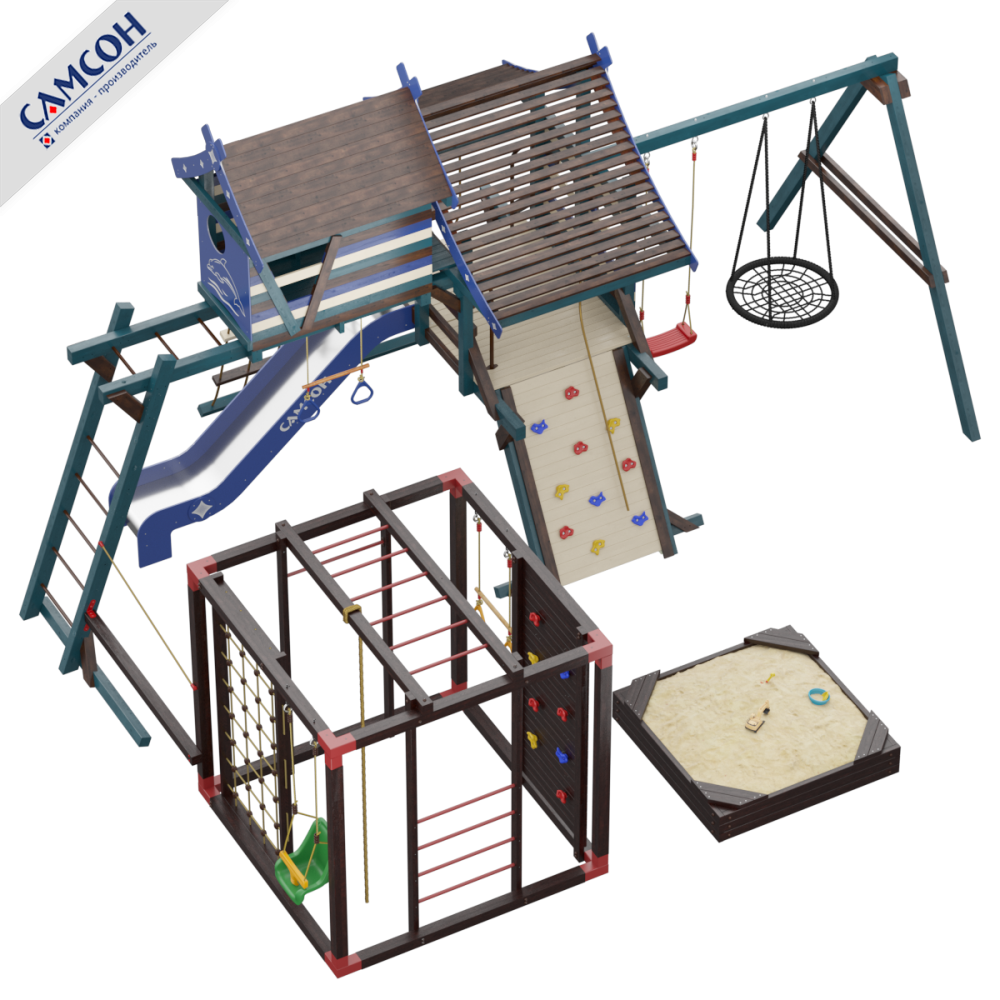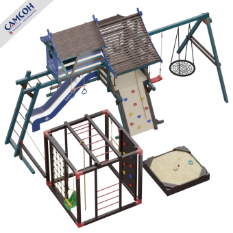 Товар поставляется в разобранном виде. В комплект для самостоятельной сборки входит подробная инструкция по сборке товара. Товар упакован в гофрокартонные короба. Установка детской игровой площадки проводится на ровной поверхности, свободной от насаждений. Рекомендуем зафиксировать конструкцию используя анкера любой формы.