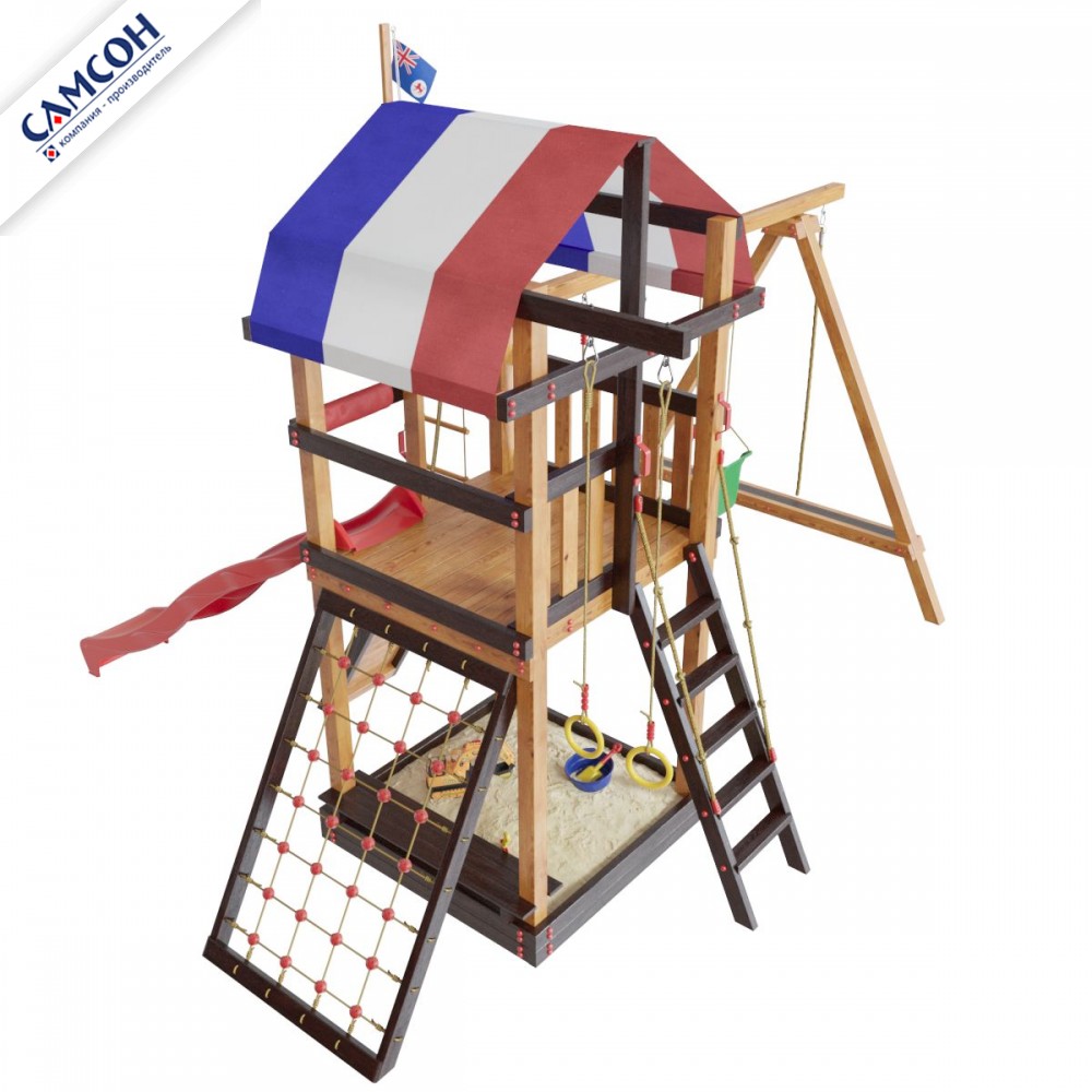 Товар поставляется в разобранном виде. В комплект для самостоятельной сборки входит подробная инструкция по сборке товара. Установка детской игровой площадки проводится на ровной поверхности, свободной от насаждений. Размер площадки не менее 6,8м х 6,2м. Рекомендуем зафиксировать конструкцию используя анкера любой формы.