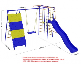 Детский спортивный комплекс "Веселый Непоседа" Модель "Галактика с прямоугольной сеткой" предназначен для выполнения различных спортивных упражнений способствующих более полному физическому развитию детей в возрасте от 3,5 лет. Комплекс используется на лужайке. Бетонированные или выложенные плиткой поверхности исключаются. Этот комплекс предназначен для использования на дачном участке и не должен использоваться в общественных местах, таких как: парки, общественные игровые площадки, дворы и т.д. Установка комплекса производится с обязательным бетонированием опорных стоек в земле на глубину примерно 20-25 см (или на высоту/ширину штыка лопаты).
