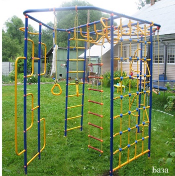 Детский городок для дачи или загородного участка. Предназначен для детей от 3,5 лет. Рекомендуется устанавливать спортивный комплекс на лужайке или другой площадке с мягким покрытием, бетонированные или выложенные плиткой поверхности исключаются. Этот комплекс предназначен для использования на дачном участке и не должен использоваться в общественных местах, таких как: парки, общественные игровые площадки, дворы. Установка производится с обязательным бетонированием опорных стоек в земле на глубину примерно 20-25 см (или на высоту/ширину штыка лопаты).