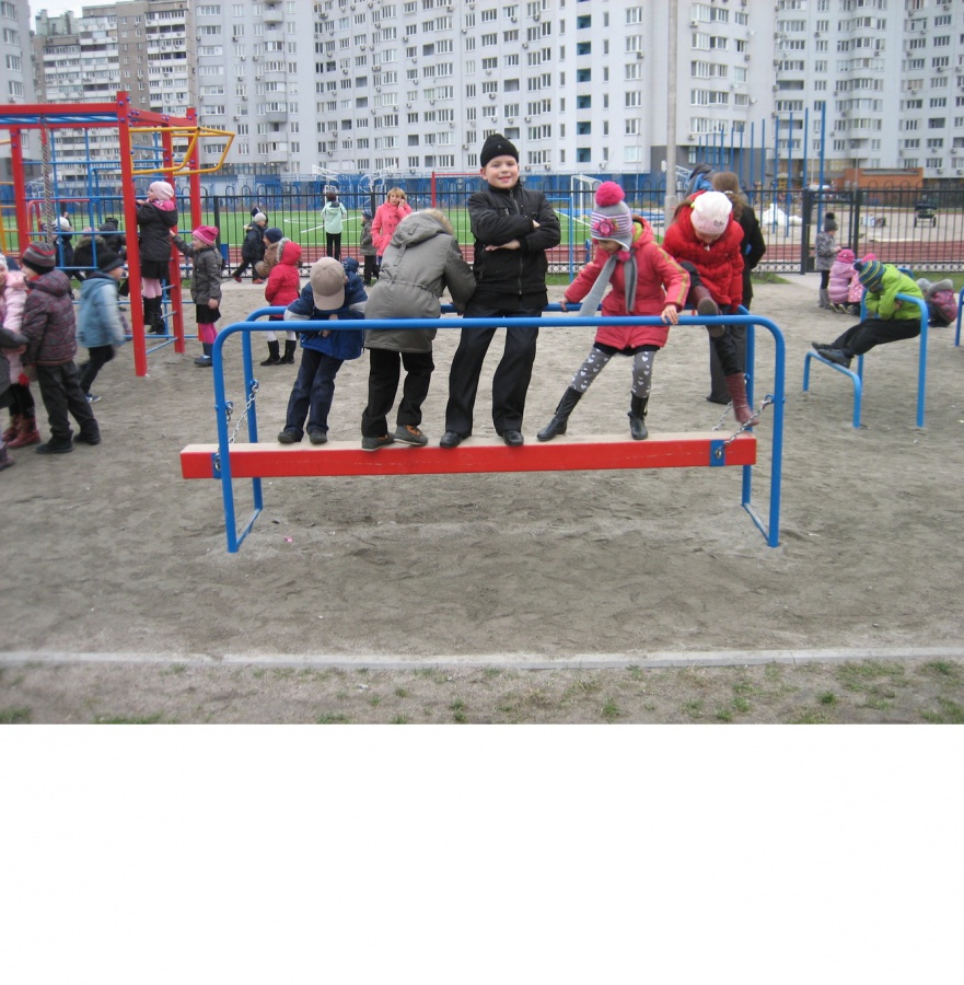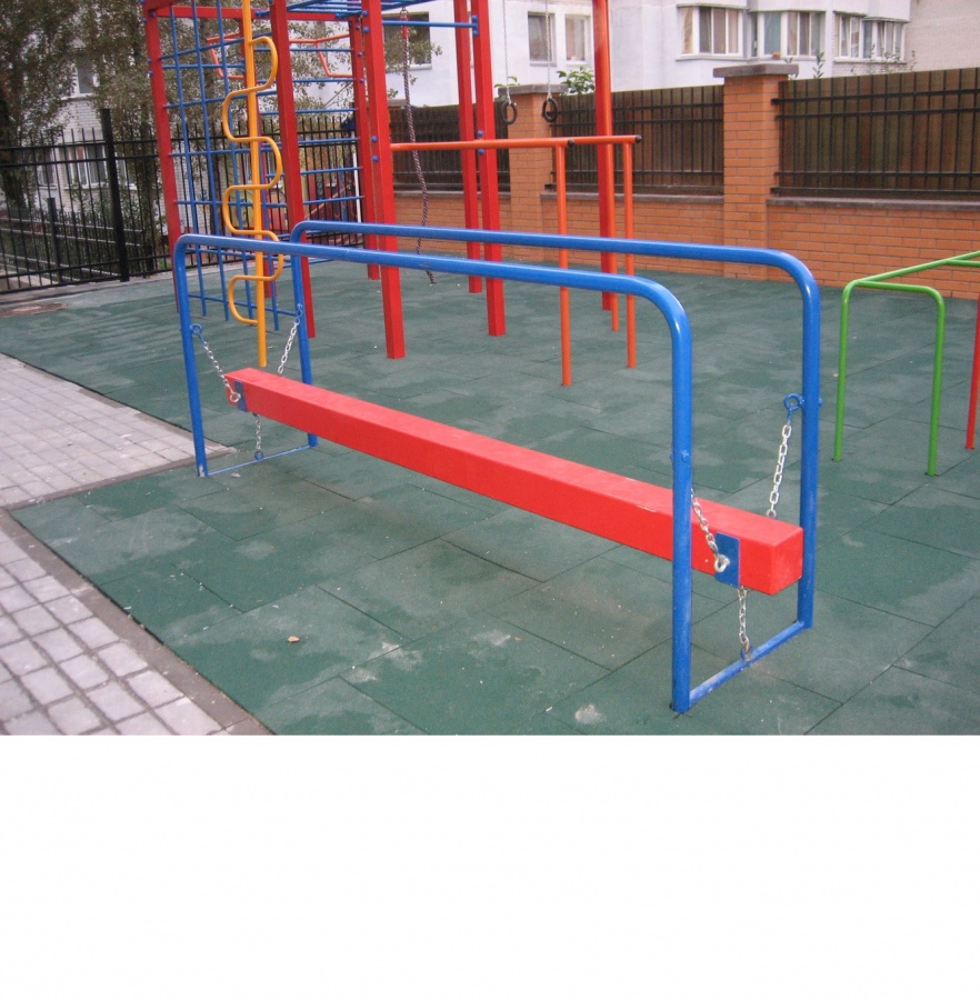 • На дугообразных опорах при помощи надежных цепей подвешано бревно-балансир для ходьбы.