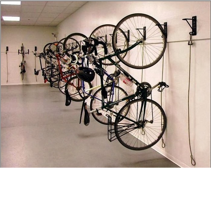 Велосипед возможно подвешивать за переднее или заднее колесо.