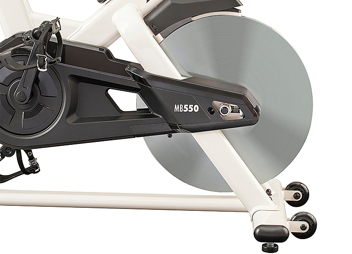 Ременный привод спин-байка MB550 работает плавно и тихо и не нуждается в смазке, в отличии от системы цепного привода.