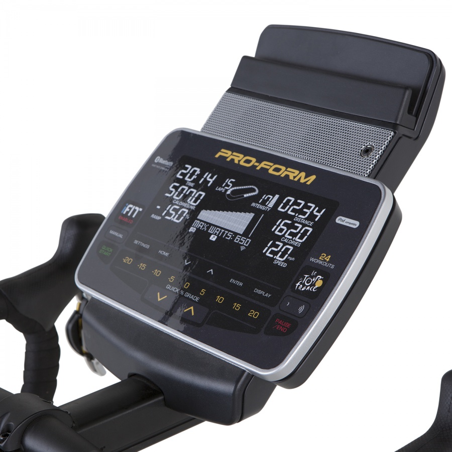 Наслаждайтесь чувством реальной езды благодаря автоматически изменяемым углам атаки, имитирующие любые крутые подъемы и затяжные спуски дорожного полотна. Начать гонку в Утрехте (Нидерланды) и пронестись по Елисейским полям в Париже, либо создать свой собственный этап в любую точку мира с помощью технологии iFit®. Невероятные виды вокруг, лица знаменитых велогонщиков рядом и мелькание толпы болельщиков на городских улицах создает возможность подключить планшет к базовому 7” дисплею через Blutooth. Постройте свою стратегию гонки, пока крутите педали официального велотренажера Tour de France.