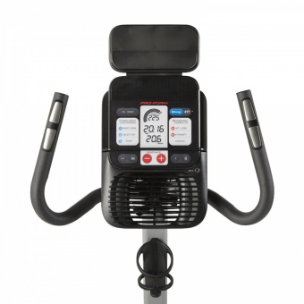 Домашний горизонтальный велотренажер с бесшумной электромагнитной системой и сидением со спинкой. 16 уровней сопротивления. Большое окно LCD-дисплея показывает интенсивность движения, пройденную дистанцию, скорость, время, сожженные калории. 16 предустановленных тренировок с 8-недельной программой по снижению веса. Датчики измерения пульса EKG™ Grip Pulse расположены на рукоятках. Стерео динамики, держатели для планшета и бутылки, охлаждающий вентилятор обеспечат комфорт во время занятий.