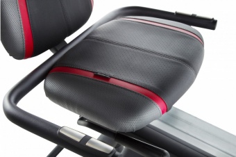 Домашний горизонтальный велотренажер с бесшумной электромагнитной системой нагружения. 18 уровней сопротивления, эргономичное сиденье с поддержкой спины, консоль с большим ЖК-дисплеем и 18 встроенными программами. Разъем для Мp3-плеера и держатель для бутылки. Внимание! Применение нагрудного датчика не предусмотрено (нет встроенного приемника).
