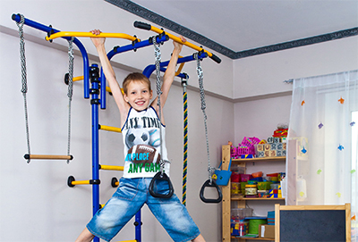 • Часовой маятник. Исходя из названия упражнения несложно догадаться, в чем заключается его выполнение. Ребенок повисает на одной из перекладин стенки, после чего начинает маятниковые движения ногами, раскачивая их в стороны. Данное упражнение отлично воздействует на мышцы поясничного отдела.